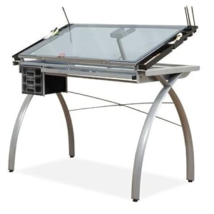 Table Overall Dimensions: 43"W x 24"D x 31.5"H Main Work Surface: 38" x 24" Tempered Blue Safety Glass Top Top Angle Adjustment